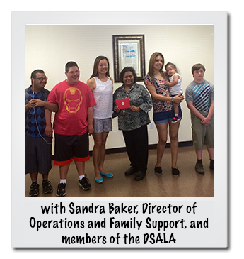 • CLIENT with Sandra Baker, Director of Operations and Family Support, and members of DSALA