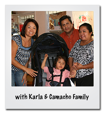 October 2011 – Aidan’s Red Envelope Foundation awards The Camacho Family the first Family Grant. Karla Camacho, 5 years old, suffers from seizures and spastic diplegia. The family reported that Karla’s current wheelchair sits very upright and has no recline feature and makes her very uncomfortable. The family requested a special needs Axiom Stroller from the Foundation. On October 7, Aidan’s Red Envelope Foundation delivered a new Axoim Stroller to the Camacho Family. When Karla sat in her new stroller for the first time, a huge smile and joyful vocalizations came out of her.