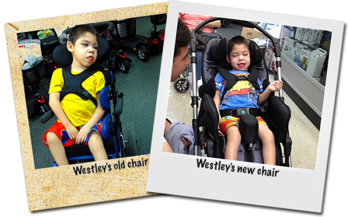 July 2013 – 5 year old Westley suffers from Severe Dystonia and Epilepsy. Westley’s severe dystonia caused his body to posture and hyper-extend into unusual and troublesome positions in his wheelchair.  This was causing him bruising and injury and became increasingly hazardous.  The wheelchair, which was provided by a government support program, became inadequate and unsafe, as it had very little adjustments and modifications which could accommodate Westley’s needs. Patricia, Westley’s mom, had repeatedly requested help from their local therapy unit for modifications to the chair, but they provided no good solutions.  She then asked them to fund a more suitable push chair for Westley, but was denied. Having nowhere else to turn, Patricia applied for a grant from AREF for a new push chair for Westley.  Understanding the predicament Patricia was in, AREF awarded Westley the grant for a new push chair. AREF purchased a custom-fitted Ormesa New Bug Pushchair for Westley from the wonderful staff at Sherman Oaks Medical Supply. Mom and Westley were very grateful and ecstatic with the new Pushchair.